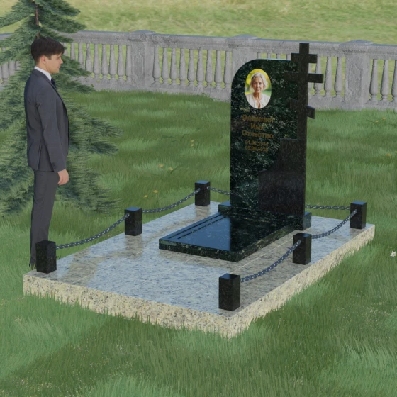 Завершенность композиции придает массивный гранитный цоколь и декоративное ограждение. По углам участка располагаются строгие каменные столбики с аккуратной фаской, соединенные декоративными цепями. Это создает четкие границы сакрального пространства, подчеркивая уединенность и покой. Каждый элемент — от массивного основания до вершины креста — подогнан с ювелирной точностью, формируя единый ансамбль, который будет служить достойным воплощением вашей памяти. Мы поможем вам на каждом этапе, чтобы этот сложный выбор стал шагом к обретению душевного равновесия и созданию места, куда захочется приходить для тихой беседы с тем, кто навсегда остался в вашем сердце.