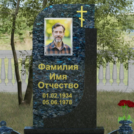 Кому подойдет: Данная модель является универсальной и гармонично впишется в мемориальный комплекс как для мужчины, так и для женщины. Асимметричная форма с плавным изгибом придает памятнику определенную легкость, что часто выбирают для оформления захоронений матерей или жен. В то же время строгая вертикальная колонна и золоченая символика делают его подходящим для увековечивания памяти отца, брата или главы семейства. Это выбор тех, кто ценит эстетику минимализма, надежность натуральных материалов и хочет подчеркнуть преемственность поколений и крепость семейных уз.