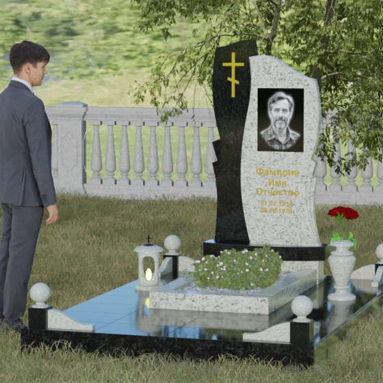 Кому подойдет: Данная модель является универсальным и при этом глубоко индивидуальным решением. Благодаря возможности комбинирования камней, она идеально подходит как для оформления мужского захоронения (в строгих темных тонах с четкими линиями), так и для женского (при выборе более светлых оттенков камня и акценте на плавную волну стелы). Наличие православного креста делает её приоритетным выбором для верующих людей, подчеркивая их принадлежность к христианской традиции и надежду на вечную жизнь. Этот мемориальный комплекс станет достойным воплощением вашей любви и бесконечного уважения к ушедшему родителю, супругу или близкому другу, сохраняя их светлый образ для будущих поколений.