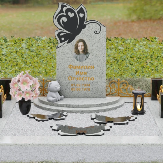 Кому подойдет: Это ритуальное изделие чаще всего выбирают для оформления захоронений молодых женщин или детей. Образ бабочки в мировой культуре неразрывно связан с преображением и вечной жизнью, что помогает близким найти крупицу утешения в эстетике и светлом символизме. Благодаря сочетанию сложной ручной резьбы и надежности природного камня, этот ансамбль станет достойным воплощением вашей любви, выделяясь на фоне типовых форм своей одухотворенностью и качеством исполнения.