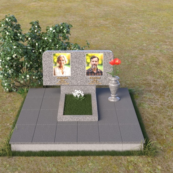 Оформление: Для данной формы стелы идеально подойдет гравировка портретов в овальной или прямоугольной форме. Расположение портретов может быть как симметричным, так и асимметричным, в зависимости от ваших предпочтений. Имена и даты жизни рекомендуется располагать под портретами, используя элегантный шрифт с засечками. Также можно добавить эпитафию, отражающую личность усопшего и вашу любовь к нему.