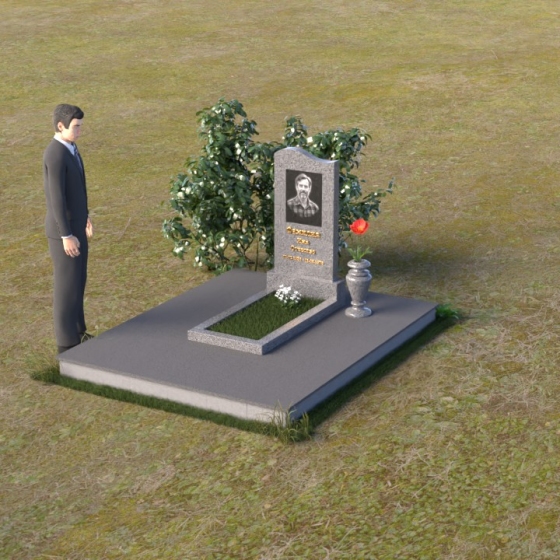 Мемориальная композиция ПВ 010 представляет собой тщательно продуманное архитектурное решение, где каждый элемент несет свою смысловую нагрузку. Стела выполнена в форме строгой, но элегантной арки, с плавным, закругленным верхом, словно стремящимся ввысь. Боковые грани стелы аккуратно скруглены, смягчая строгость формы и придавая ей ощущение спокойствия и завершенности. На лицевой стороне выгравирован портрет усопшего, выполненный с высоким уровнем детализации, а ниже – надпись с именем и датами жизни. Отдельно стоит отметить подставку под стелу. Она имеет прямоугольную форму с зеркальной полировкой, которая отражает небо и окружающий пейзаж, создавая ощущение легкости и воздушности. Скошенные фаски по периметру подставки добавляют ей изысканности и подчеркивают четкость линий.