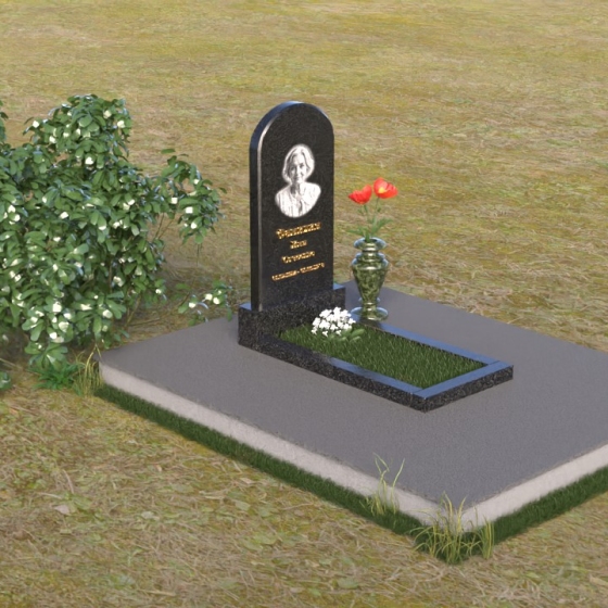 Форма арки, выбранная для стелы, символизирует переход из земной жизни в вечность. Она словно врата, открывающиеся в иной мир, полный покоя и света. Закругленные грани стелы говорят о мягкости и доброте ушедшего человека, о его способности сострадать и любить. Зеркальная полировка подставки отражает надежду на светлое будущее и веру в бессмертие души. В целом, мемориальная композиция излучает чувство защищенности и умиротворения, создавая атмосферу тихой скорби и светлой памяти.