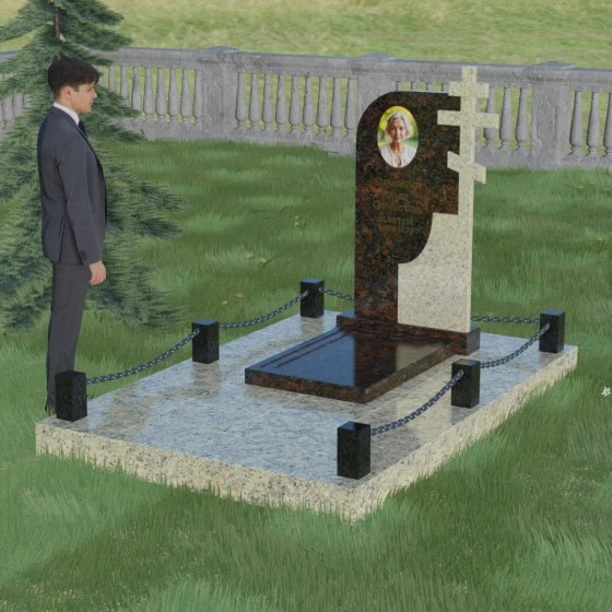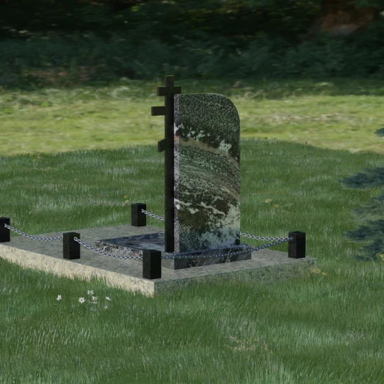 Завершенность композиции придает массивный гранитный цоколь и декоративное ограждение. По углам участка располагаются строгие каменные столбики с аккуратной фаской, соединенные декоративными цепями. Это создает четкие границы сакрального пространства, подчеркивая уединенность и покой. Каждый элемент — от массивного основания до вершины креста — подогнан с ювелирной точностью, формируя единый ансамбль, который будет служить достойным воплощением вашей памяти. Мы поможем вам на каждом этапе, чтобы этот сложный выбор стал шагом к обретению душевного равновесия и созданию места, куда захочется приходить для тихой беседы с тем, кто навсегда остался в вашем сердце.