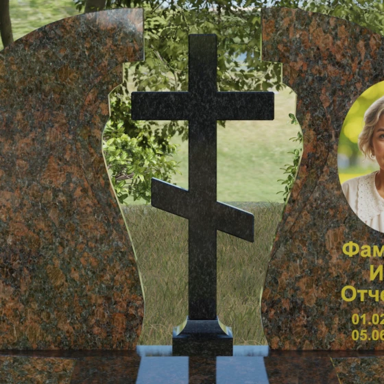 Оформление и дизайн: Благодаря большой площади полированного полотна, эта модель идеально подходит для классической гравировки. Мы рекомендуем использовать сусальное золото или глубокую пескоструйную обработку для нанесения ФИО — это особенно эффектно смотрится на темных сортах камня. Портрет может быть выполнен как в виде классической гравировки, так и в виде фотокерамики в изящной нише, что мы видим на примере данной модели. Расположение художественных элементов на правой или левой части стелы позволяет гармонично сбалансировать визуальный ряд.