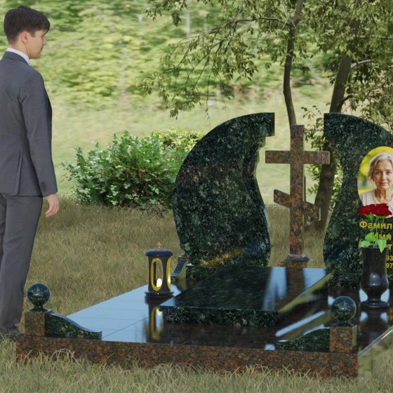 • Аксессуары: В едином стиле с комплексом выполнены гранитная ваза для живых цветов и закрытая лампада, свет которой символизирует вечную молитву о близком человеке.