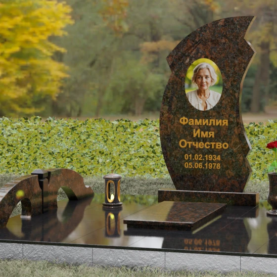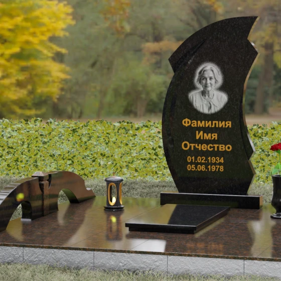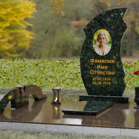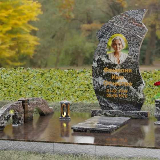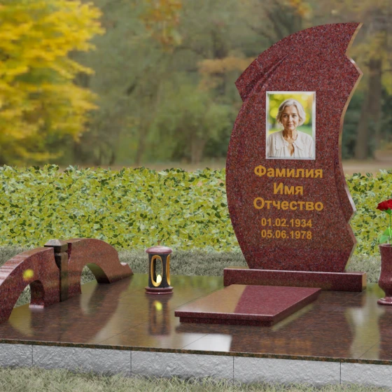 Центральное место на стеле отведено под портрет. Форма монумента позволяет гармонично разместить как классическую гравировку, так и цветной фотокерамический медальон или портрет на стекле. Дополнительные аксессуары, входящие в состав композиции — изящная гранитная ваза для живых цветов и закрытая лампада для поминальной свечи — делают мемориал функциональным и эстетически завершенным. Мы поможем вам подобрать шрифты для эпитафии и дополнительные художественные элементы, чтобы это место стало достойным отражением вашей светлой печали.