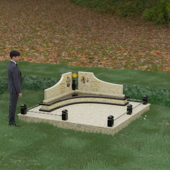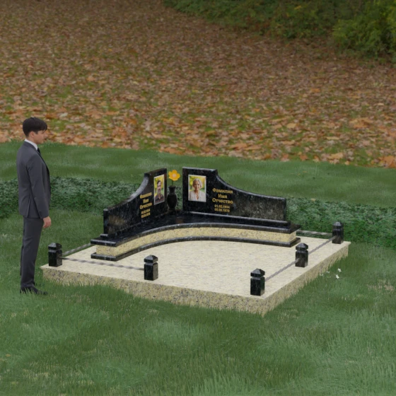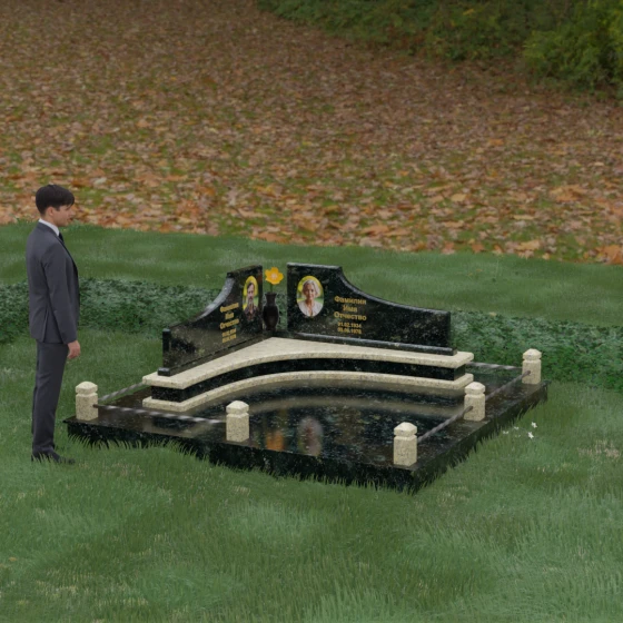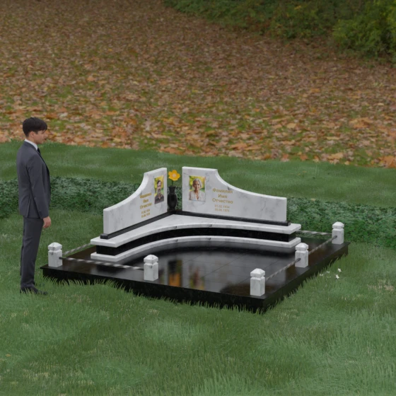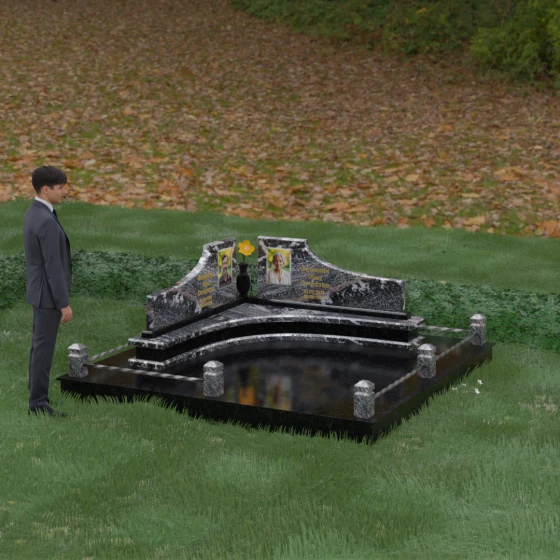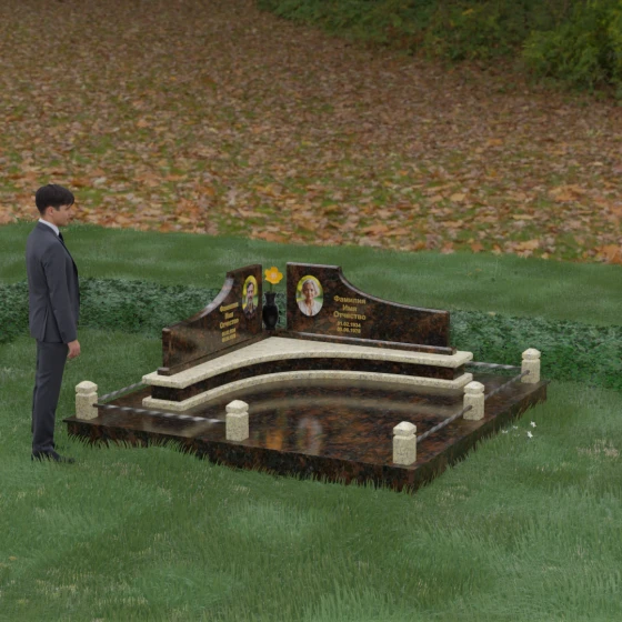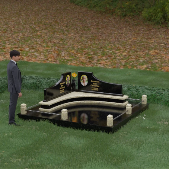 Каждая линия этого мемориального ансамбля наполнена глубоким смыслом. Волнообразные вершины символизируют бесконечное движение жизни и переход души в иное состояние, напоминая о том, что любовь вечна. Ступенчатое основание — это аллегория жизненного пути, где каждый уровень представляет собой определенный этап достижений и мудрости. Сочетание двух контрастных оттенков камня в одной композиции олицетворяет единство земного и небесного, света и тени, радости прошлых дней и светлой печали настоящего. Этот проект идеально подходит для парного захоронения, подчеркивая неразрывную связь двух судеб под общей защитой благородного камня.