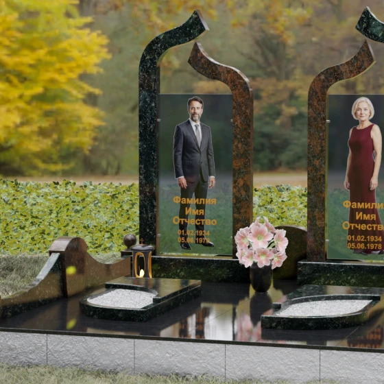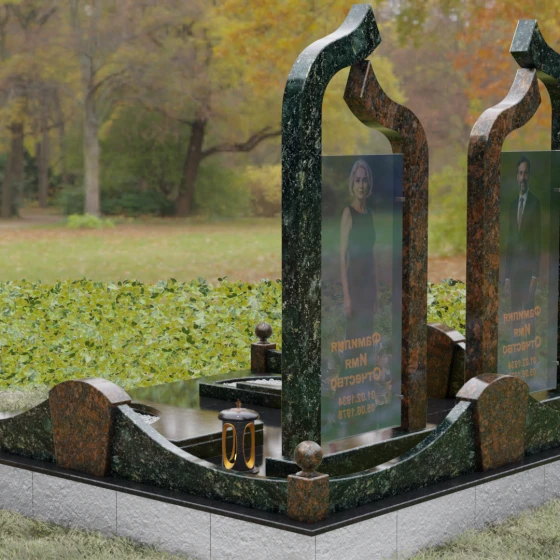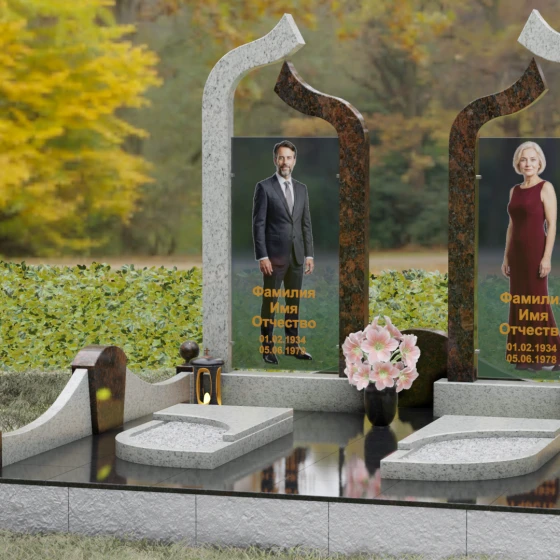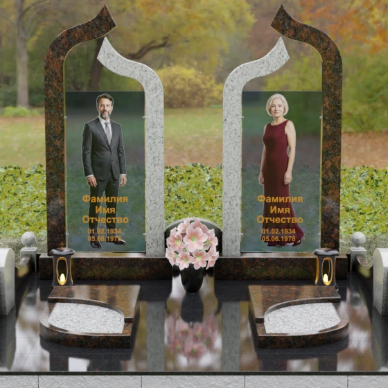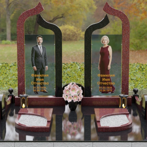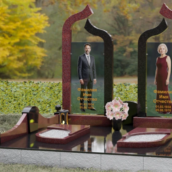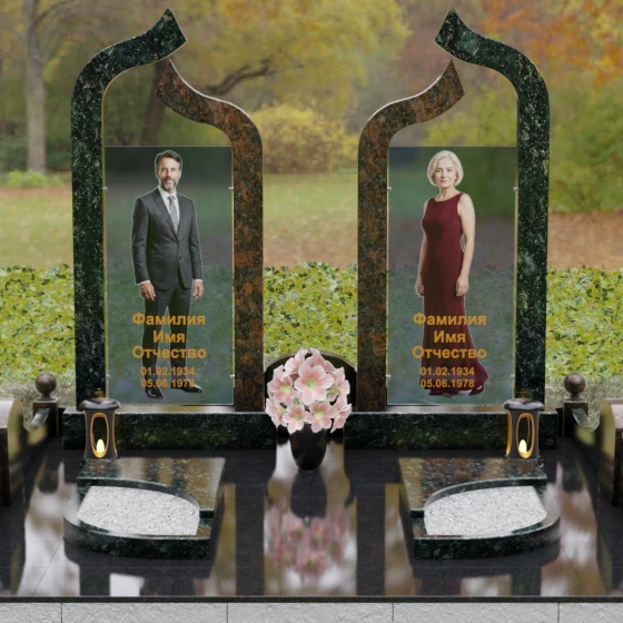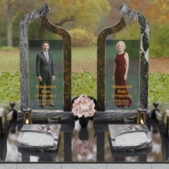 Для того чтобы мемориал максимально точно отражал характер близких вам людей, мы предлагаем выполнение этой модели в 8 цветовых решениях. Вы можете выбрать классический черный гранит Габбро-диабаз, величественный красный гранит Лезниковский, аристократичный белый гранит Мансуровский или нежный мрамор Тассо. Также доступны уникальные текстуры: гранит амфиболит с его неповторимым рисунком, глубокий гранит Балтик грин, искрящийся Блю Перл или насыщенный коричневый гранит Дымовский. Каждая порода придает мемориалу совершенно иное настроение.