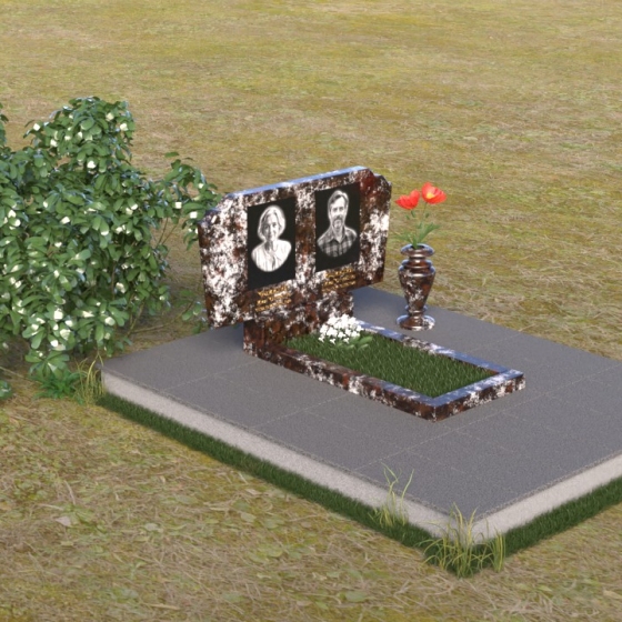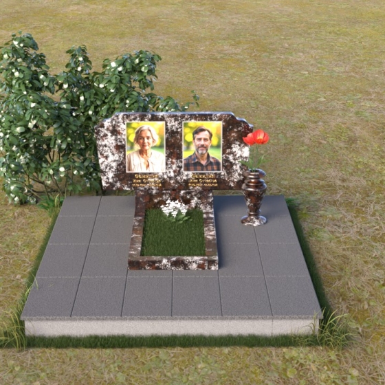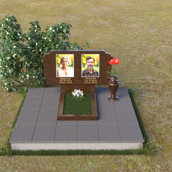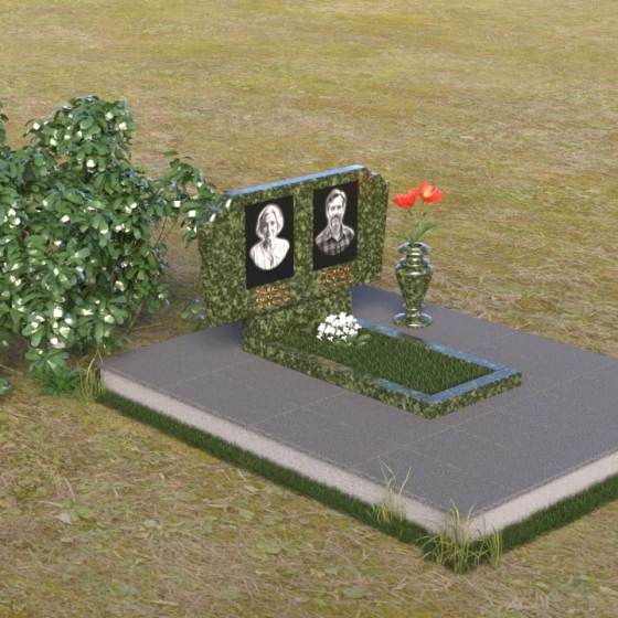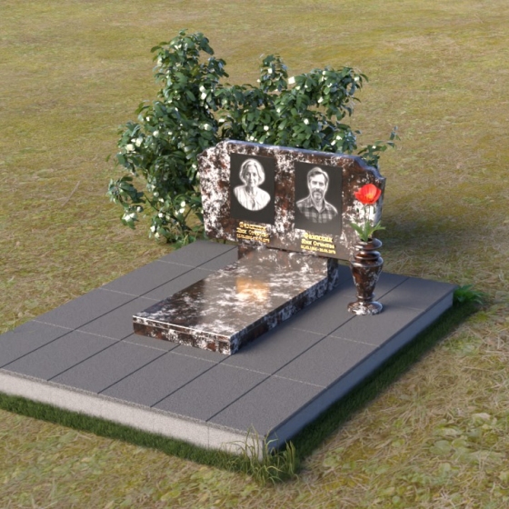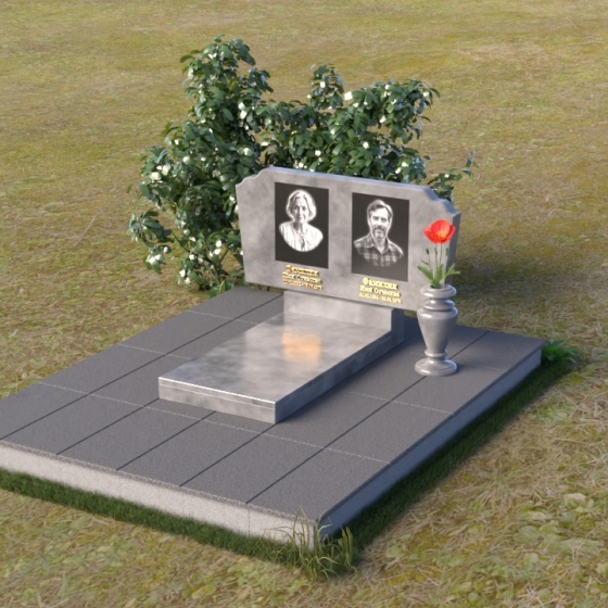 Оформление: Для этой формы стелы идеально подойдут гравировки портретов в овальной или прямоугольной рамке, выполненные в классическом стиле. Имя и фамилию можно разместить под портретами, используя элегантный шрифт с засечками, подчеркивающий торжественность момента. Небольшая эпитафия, выгравированная в нижней части стелы, станет завершающим штрихом, выражающим вашу любовь и скорбь.