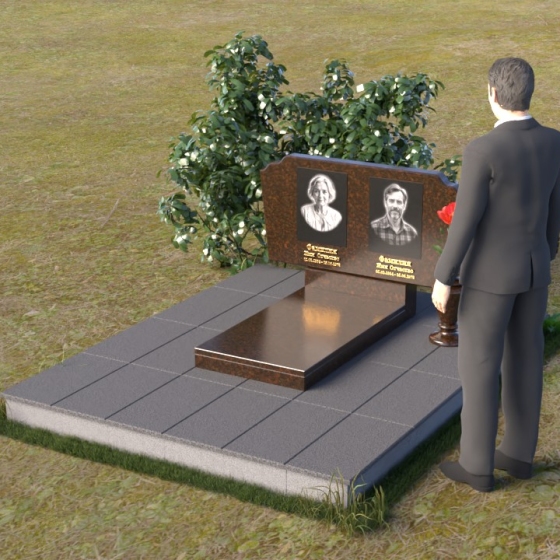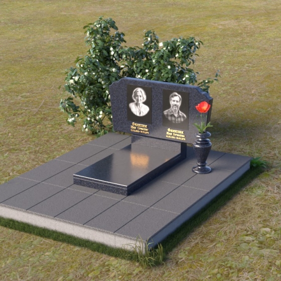 Верхняя часть стелы, выполненная в форме мягкой арки, несет на себе гравировку портретов усопших. Четкость линий, достигнутая современными технологиями, позволяет передать мельчайшие детали лиц, словно запечатлевая их живыми и смотрящими на нас из вечности. Нижняя тумба с зеркальной полировкой, служит основанием для стелы, и создает ощущение законченности и гармонии. Ее лаконичные формы подчеркивают строгость и достоинство всего комплекса.