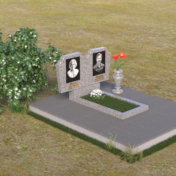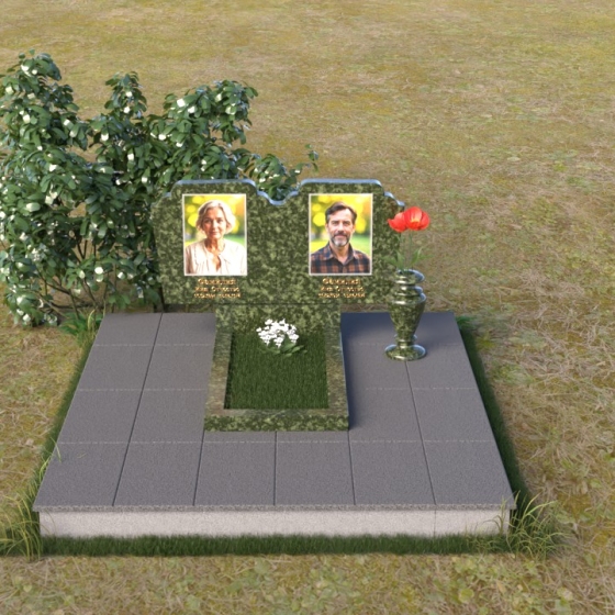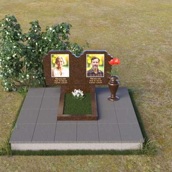 Форма стелы идеально подходит для размещения портретов усопших. Благодаря достаточно большой площади поверхности, можно разместить не только портреты, но и эпитафии, отражающие самые важные черты характера и жизненные ценности. Текст, выполненный методом гравировки, будет четким и долговечным. Вертикальное расположение стел позволяет акцентировать внимание на лицах ушедших, создавая ощущение их присутствия рядом. Наличие подставки под вазу позволяет украсить место захоронения живыми или искусственными цветами, которые добавят красок и жизни в мемориальную композицию. Красная роза, изображенная на одной из стел, символизирует любовь и память, которые навсегда останутся в сердцах близких.