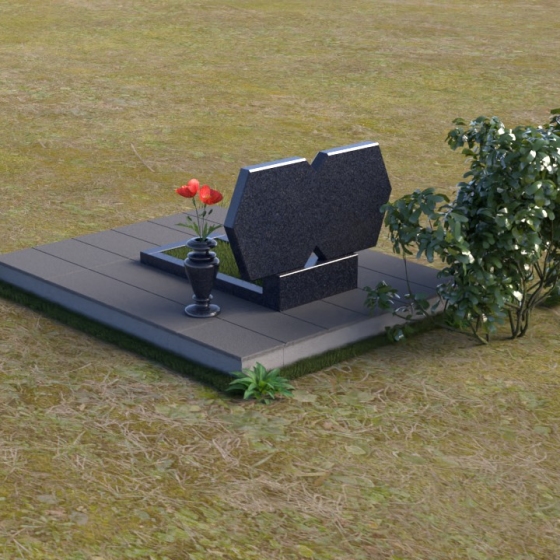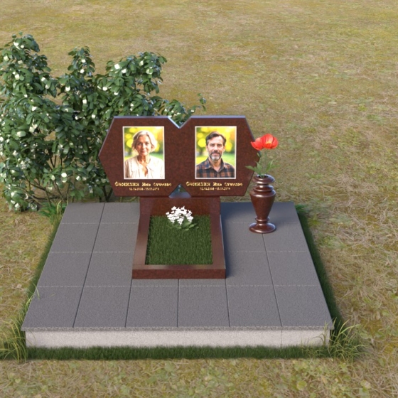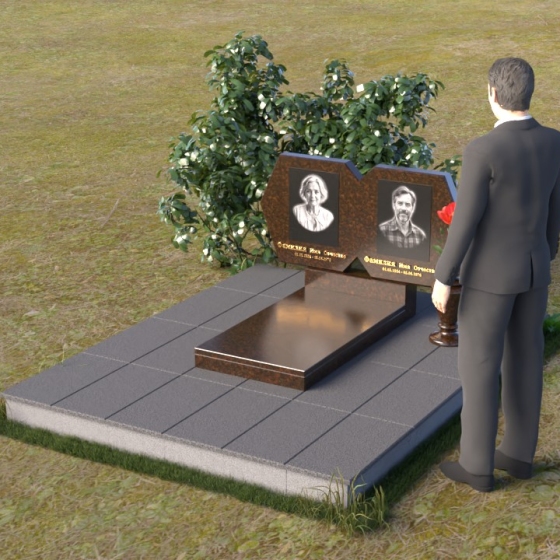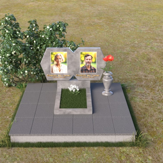 Форма этого памятника, состоящая из двух соединенных частей, символизирует неразрывную связь двух любящих сердец, единство душ, которое не может быть разрушено даже смертью. Мягкие линии и сглаженные углы говорят о покое и умиротворении, которые обретает душа после земной жизни. Полированный гранит, отражая свет, символизирует светлую память и надежду на вечную жизнь. Строгая геометрия нижней части стелы подчеркивает важность земного пути и тех ценностей, которые человек пронес через свою жизнь. В целом, этот памятник создает ощущение защиты и умиротворения, напоминая о вечности и непреходящей ценности человеческой жизни.