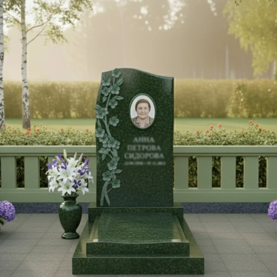 Оформление: Плавные изгибы стелы ПН 022 идеально подходят для размещения портрета в овальной рамке, который гармонично вписывается в общую композицию, создавая ощущение мягкости и нежности. Гравировка ФИО и дат жизни будет выглядеть особенно выразительно на полированной поверхности камня, а каллиграфические шрифты подчеркнут элегантность и утонченность монумента. Вы также можете добавить эпитафию, которая будет выгравирована с особой чуткостью, дополняя образ и передавая ваши самые сокровенные чувства.
