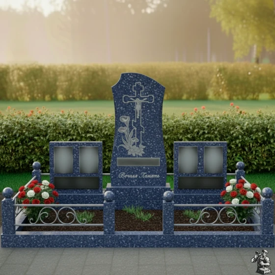 В основе этого мемориала лежит натуральный камень высшей категории, известный своей исключительной долговечностью и стойкостью к суровым климатическим условиям. Природный гранит обладает уникальной плотностью, что делает его практически неуязвимым для влаги, перепадов температур и выветривания. Зеркальный блеск полировки не померкнет под воздействием солнечных лучей, сохраняя свою первозданную чистоту десятилетиями. Данная модель может быть реализована в 8 цветовых решениях, что позволяет подобрать материал, наиболее точно отражающий характер и образ жизни покойных. На выбор предлагаются: благородный черный гранит Габбро-диабаз, насыщенный Балтик грин, мерцающий Блю Перл, а также текстурные варианты — Амфиболит, Дымовский, Лезниковский и Мансуровский граниты. Для ценителей классической чистоты доступен мрамор Тассо.