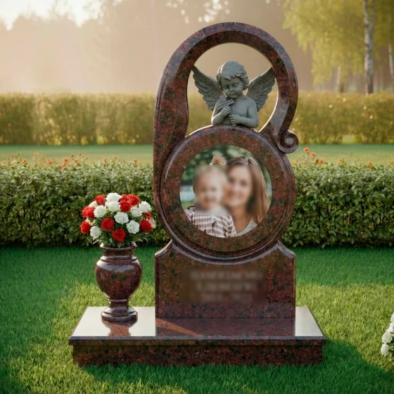 Создание достойного места памяти — это тонкое искусство, требующее не только мастерства камнереза, но и глубокого понимания символизма. Представленное ритуальное изделие (Артикул 717) является эталоном художественного подхода к мемориальной пластике. В этой модели гранит перестает быть просто холодным камнем, превращаясь в пластичную форму, выражающую бесконечную любовь и опеку высших сил над ушедшим близким.