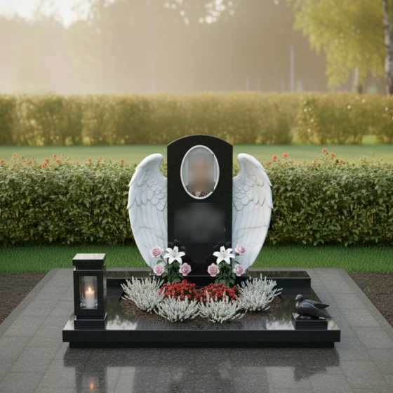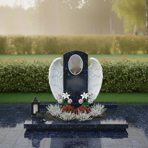 Кому подойдет: Данная модель создана для тех, кто хочет выразить безграничную нежность и любовь. Благодаря наличию ангельской символики, цветов и плавных линий, композиция чаще всего выбирается для оформления женских захоронений — для мамы, жены, дочери или сестры. Она подчеркивает женственность, доброту и ту светлую печаль, которую хранят в сердцах близкие. Однако в строгом исполнении из темного камня (например, Габбро-диабаза) этот мемориальный комплекс может стать достойным символом вечной памяти и для мужчины, если его жизнь была наполнена созиданием и заботой о семье.