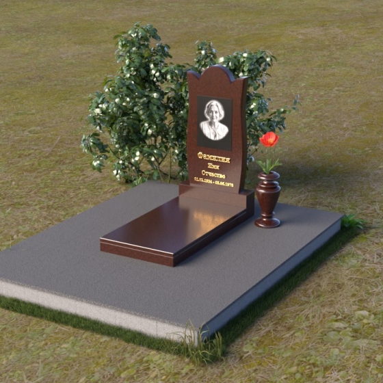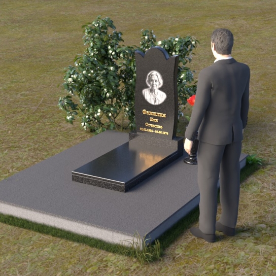 Форма стелы ПВ 070 предоставляет широкие возможности для оформления. Портрет усопшего идеально впишется в верхнюю часть композиции, а золотые буквы имени и дат жизни будут контрастно выделяться на фоне черного гранита, создавая ощущение тепла и света. Расположение портрета в овале или прямоугольнике – выбор за вами, в зависимости от личных предпочтений и стиля фотографии. Зеркальная поверхность камня создаст эффект глубины и объема, делая портрет более выразительным и живым. Дополнительно, у основания стелы можно установить небольшую вазу для цветов, которые станут символом вашей вечной любви и памяти. Небольшая тумба, выполненная в том же стиле и из того же материала, что и стела, завершит общую композицию и придаст ей законченный вид.