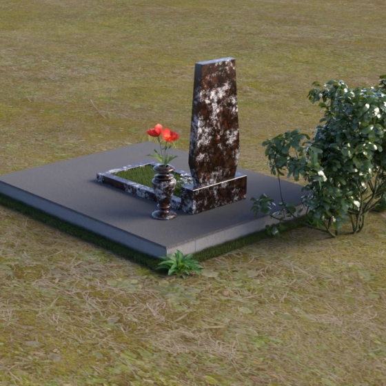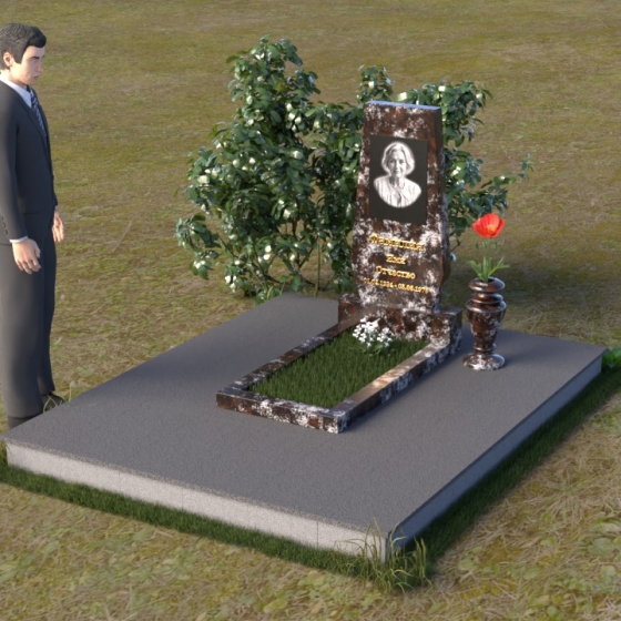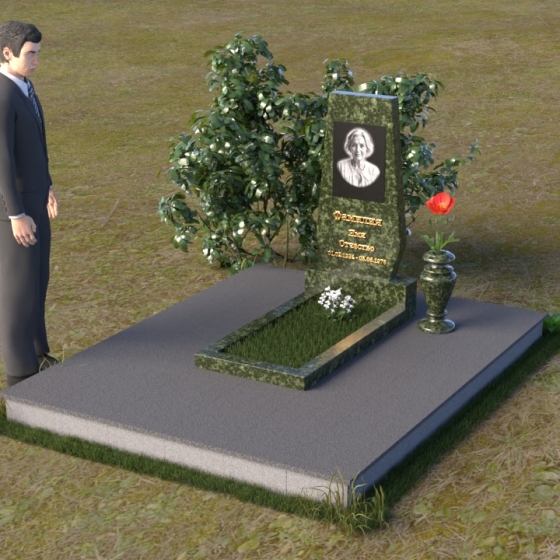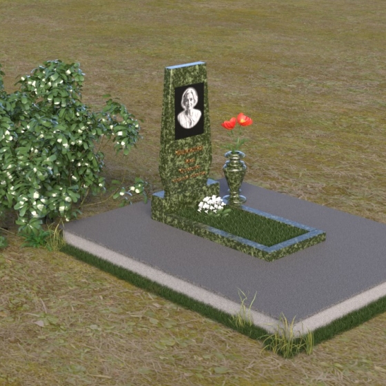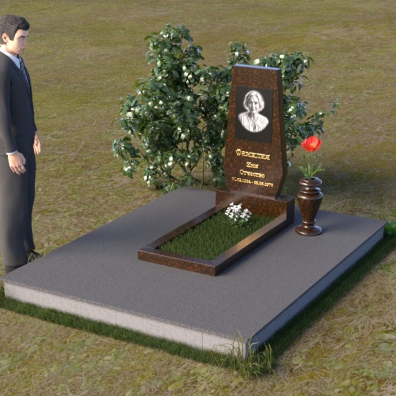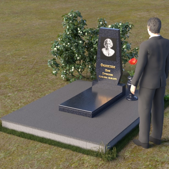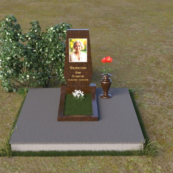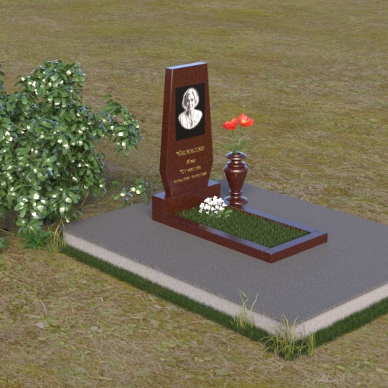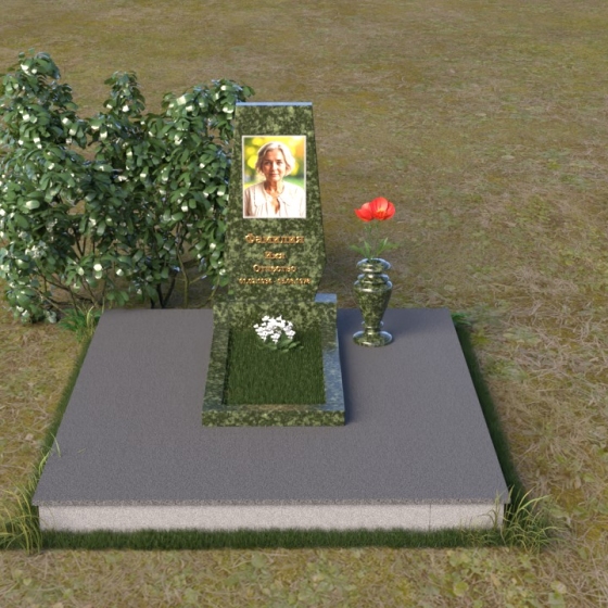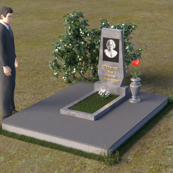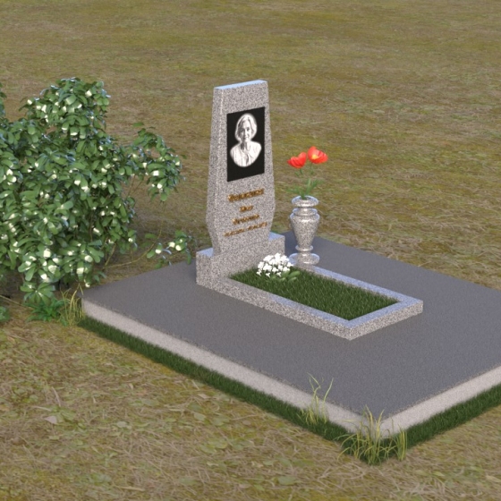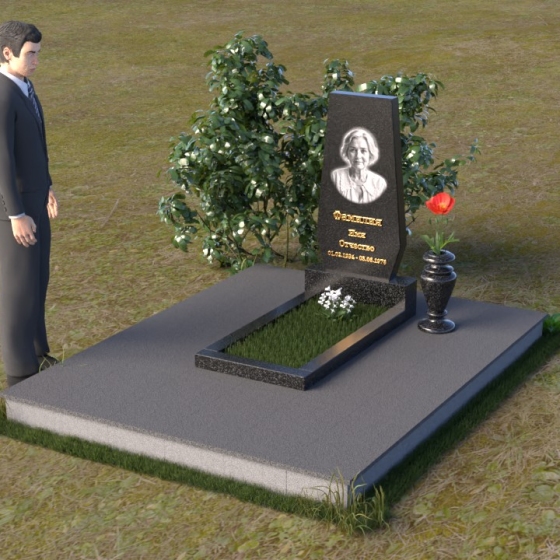 Строгие линии и сдержанная форма этого надгробного сооружения предоставляют широкие возможности для оформления. Портрет усопшего, выполненный в технике гравировки, будет выглядеть особенно выразительно на фоне зеркально отполированного гранита. Золотое начертание имени и дат жизни добавит памятнику торжественности и благородства. Расположение портрета может быть как классическим – в верхней части плиты, так и более оригинальным – смещенным вбок, что позволит добавить дополнительные элементы декора, такие как эпитафия или символические изображения. Небольшой цветник, расположенный в нижней части памятника, станет местом для живых цветов, символизирующих неувядающую память и любовь. Узкая горизонтальная плита, примыкающая к вертикальной части, позволяет разместить свечи или лампадки, создавая атмосферу умиротворения и покоя.