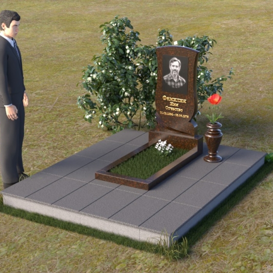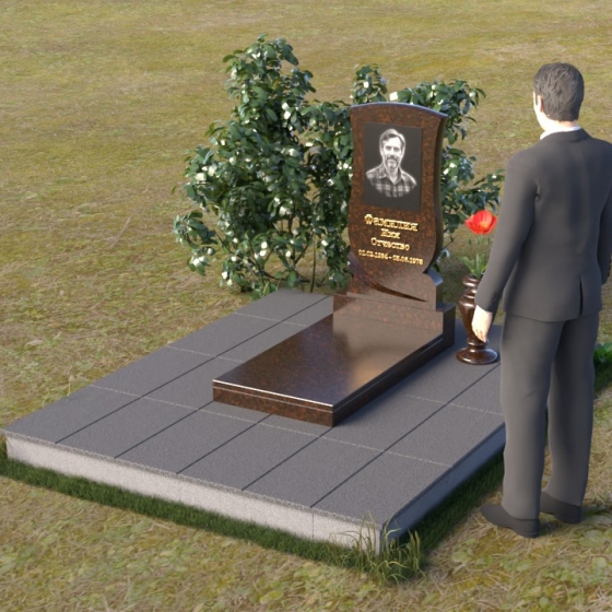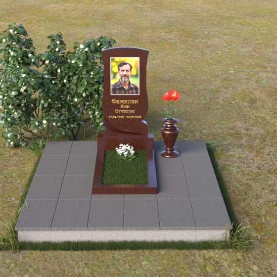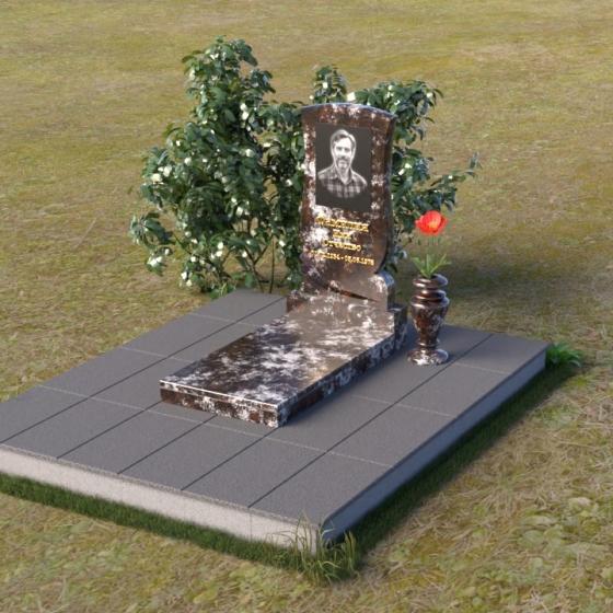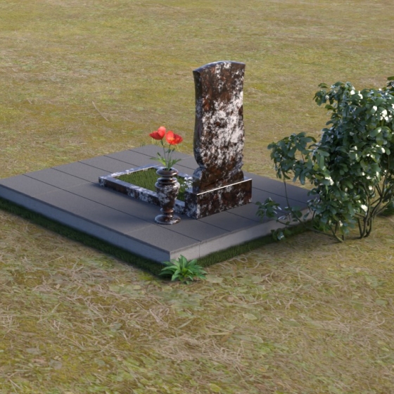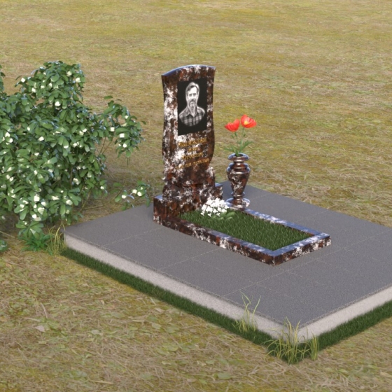 Геометрия модели продумана до мелочей. От основания, выполненного в виде прямоугольной плиты, переходящей в надгробную плиту с зеркальной полировкой, до изящного изгиба верхней части стелы – каждый элемент работает на создание гармоничного и запоминающегося образа. Плавные линии смягчают строгость камня, а контраст полированных и матовых поверхностей придает глубину и объем. Маленькая ваза, выполненная из того же гранита, что и остальная композиция, довершает образ, позволяя разместить живые цветы в память об ушедшем.